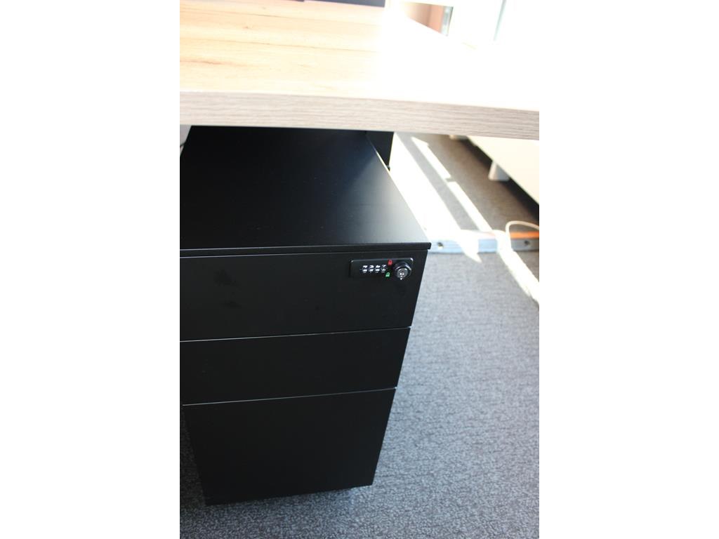 Dubbelzijdig elektrisch zit-sta bureau omt met akoestische scheidingswand, stekkerdoos en 2 verrijdbare lad... onderdeel van combinatiekavel combinatie van 4 dubbelzijdige elektrisch zit-sta bureau omt met akoestische scheidingswand, stekkerdoos en 2 verrijdbare ladekasten.