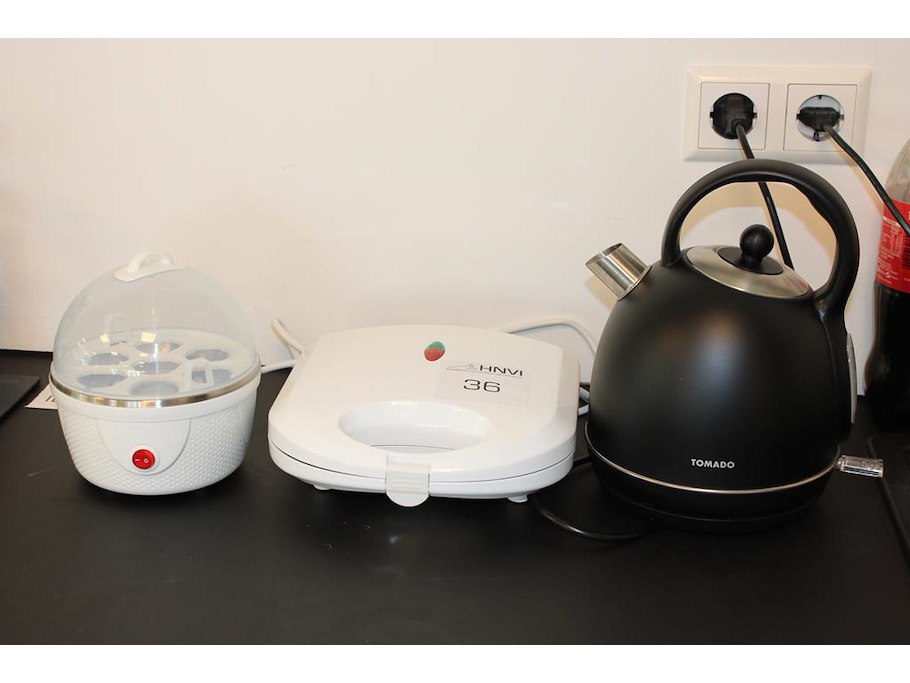 Keukenapparaten w.o. tosti-ijzer, waterkoker en eierkoker.