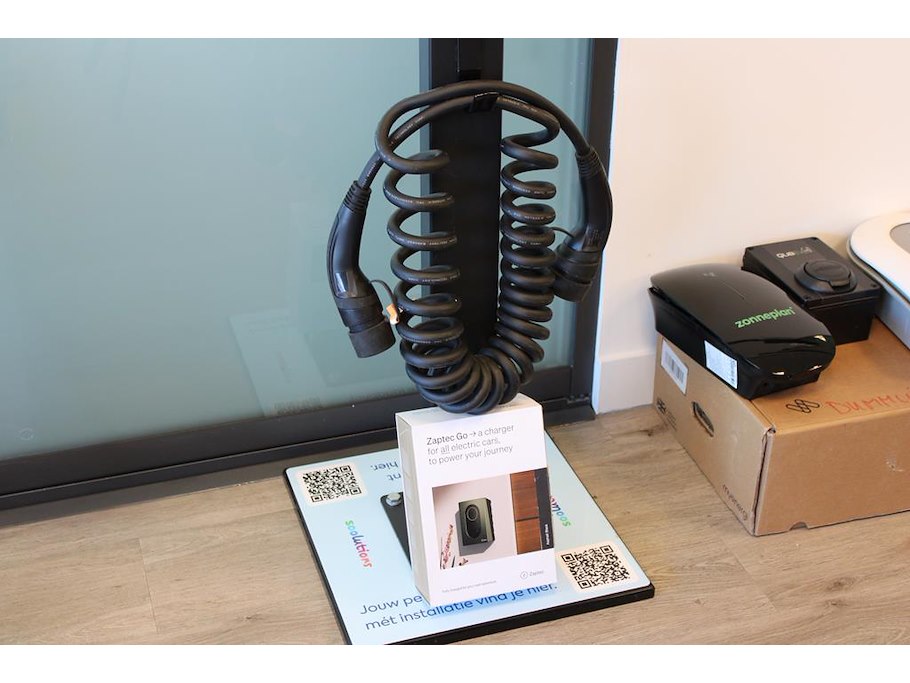 Autolader zaptec go met laadpaal en laadkabel.