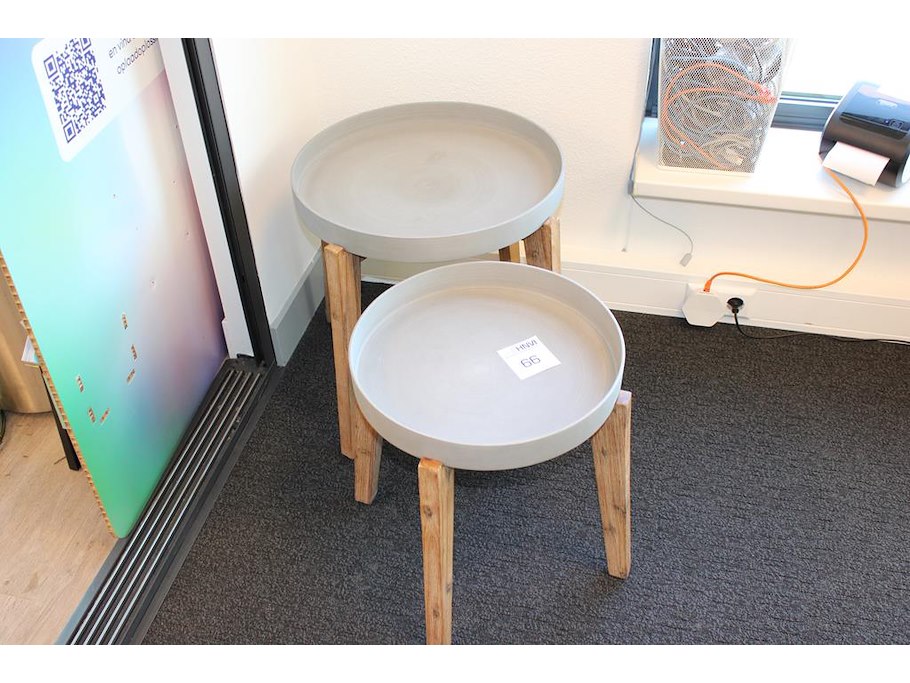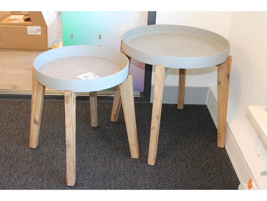 Twee bijzettafels met doorsnede 39 en 49 cm.