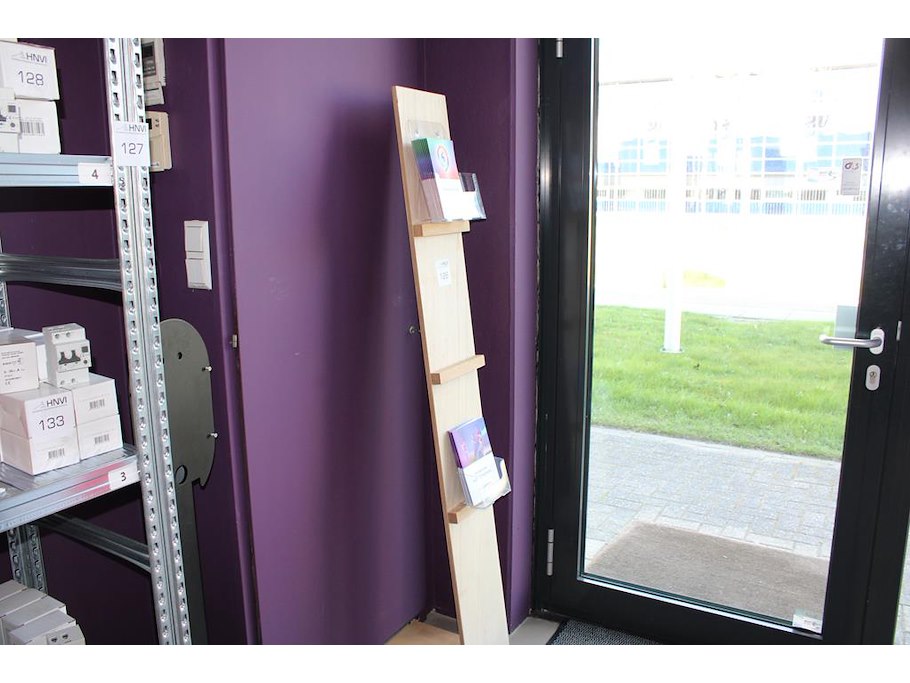 Houten brochurestandaard met afmeting 25 x 170 cm.