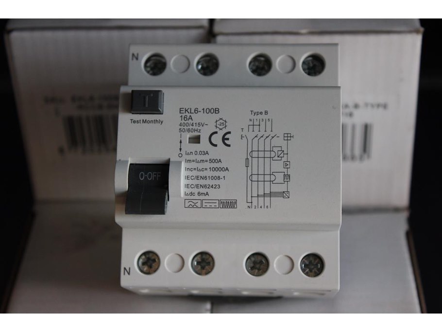 7 aardlekschakelaars EKL6-100B. 16A. 30mA. 3-polig.