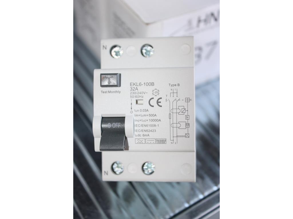 9 aardlekschakelaars EKL6-100B. 32A. 30mA. 1-polig.