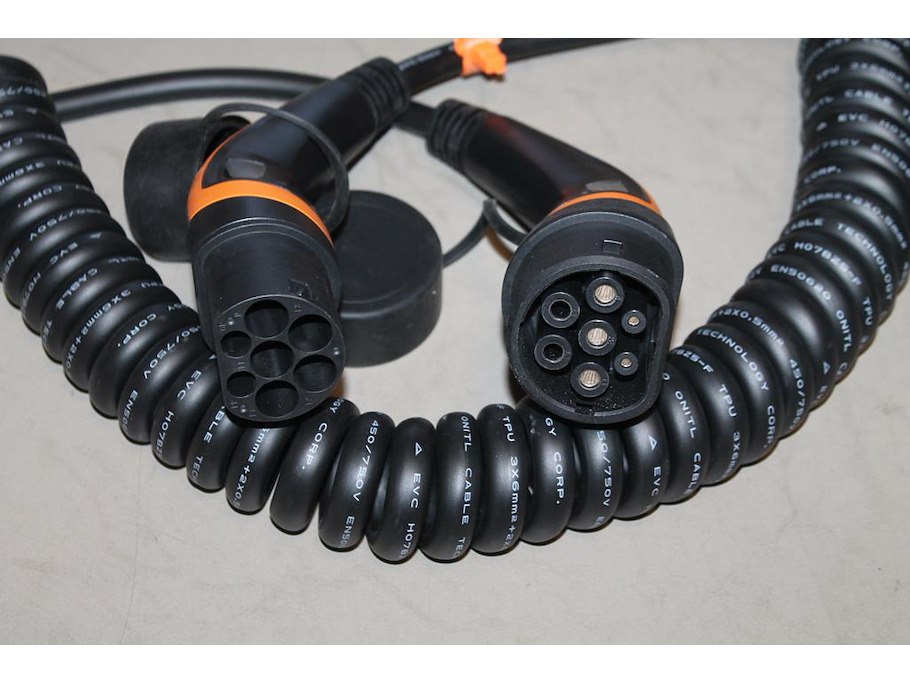Autolaadkabel / koppelkabel spiraal Type 2. 6m 3x6 mm2.