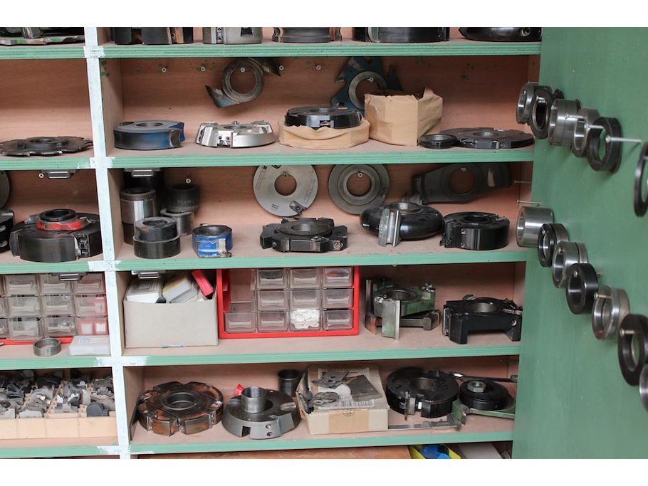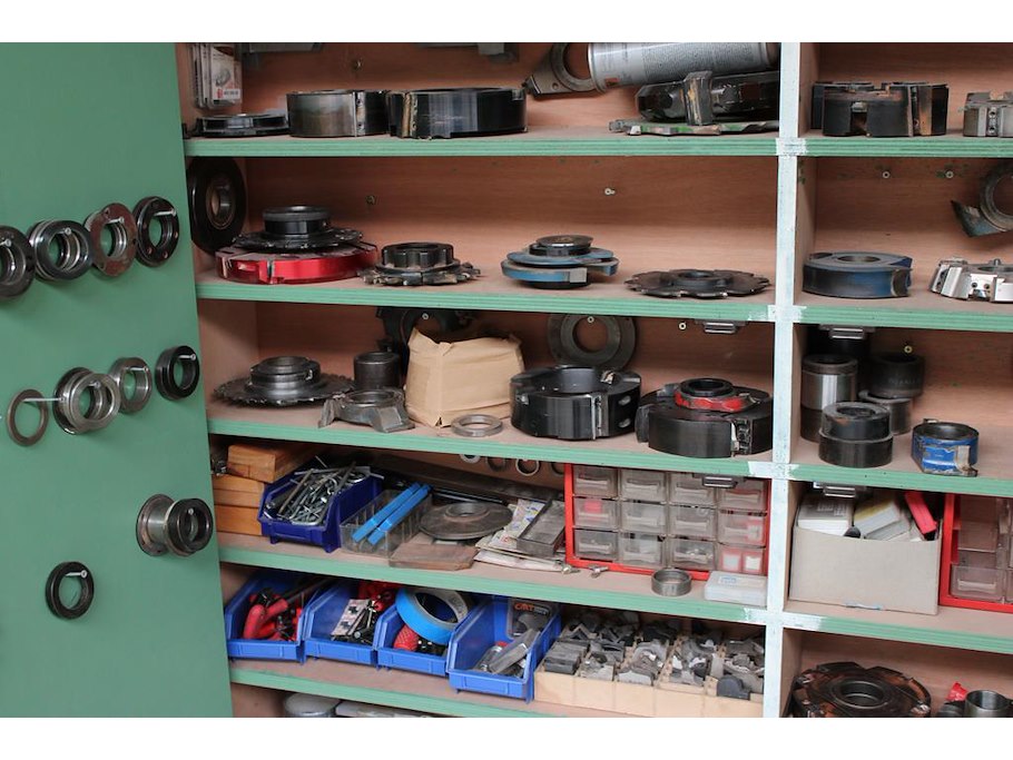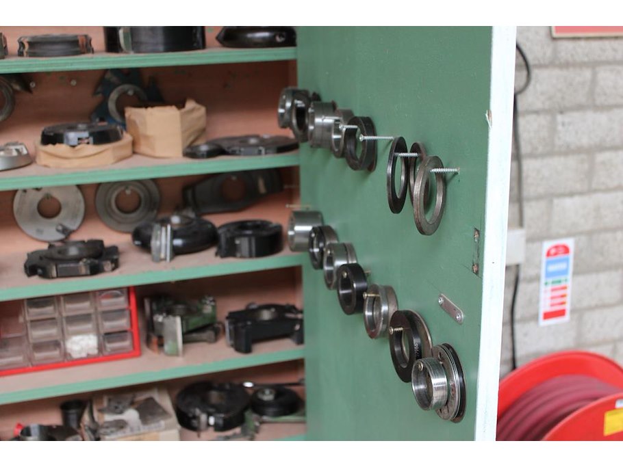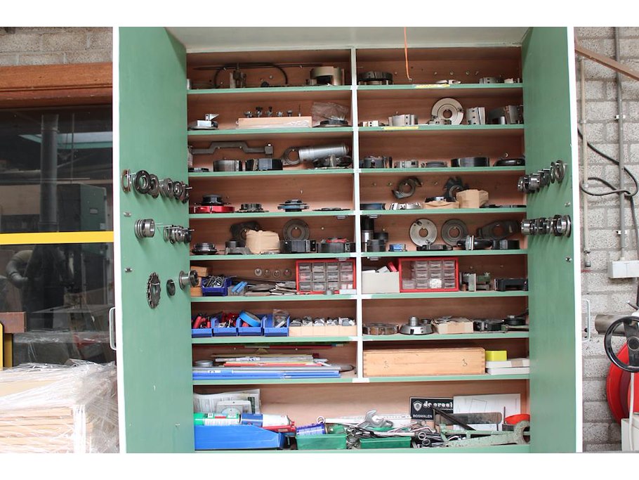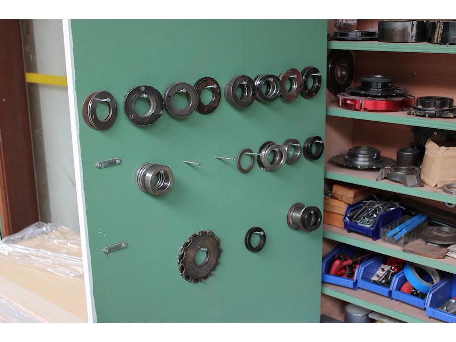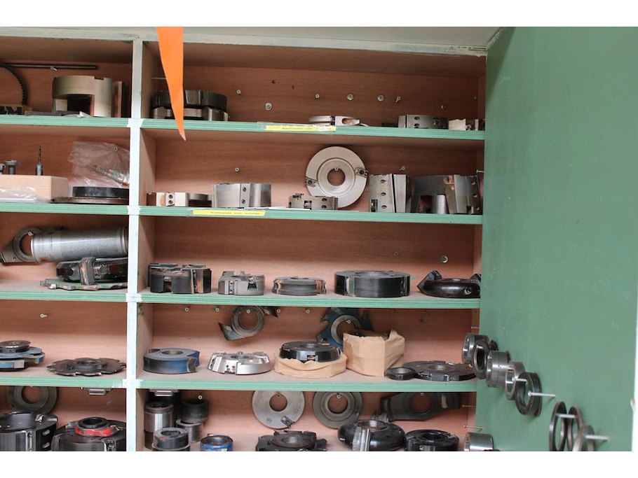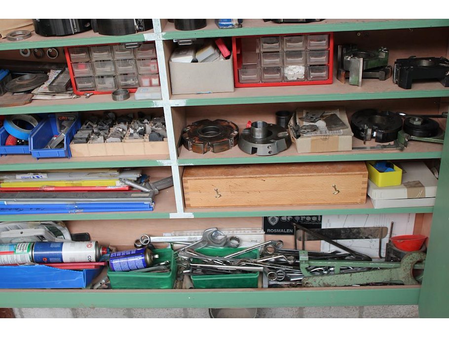 Freeskoppen, frezen, stelringen en gereedschappen in grote diversiteiten in wandkast. let op: kavel is onde... onderdeel van combinatiekavel combinatiekavel van de kavels b005 en b011.