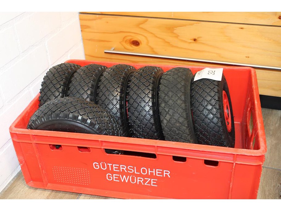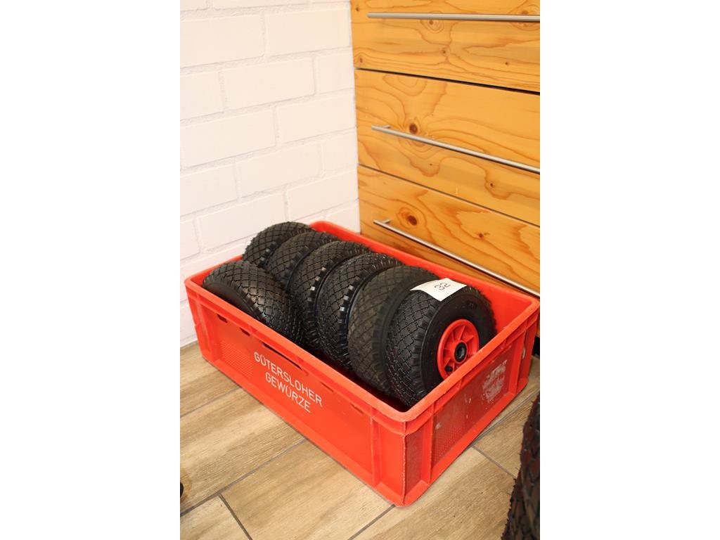 7 platenwagen banden in kunststof krat. maatvoering 3.00-4(260x85)