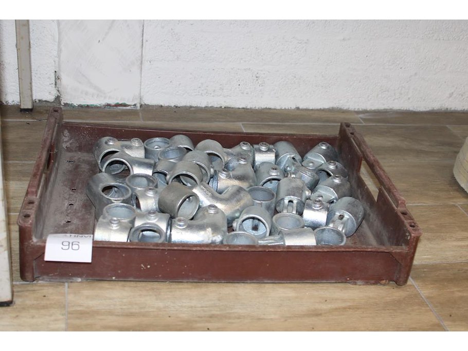 Gegalvaniseerde koppelstukken t.b.v. banner in kunststof krat.