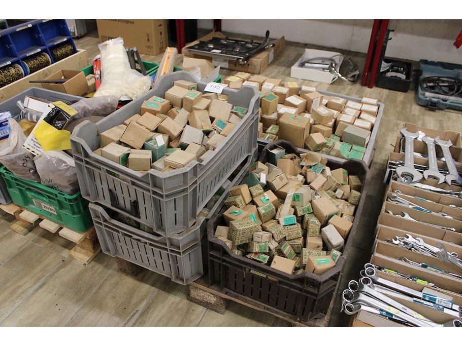 Stalen platkopschroeven in diverse afmetingen op pallet w.o. 4.0x20, 1.6x16, 2.5x10, 3x12 en 3.5x10.
