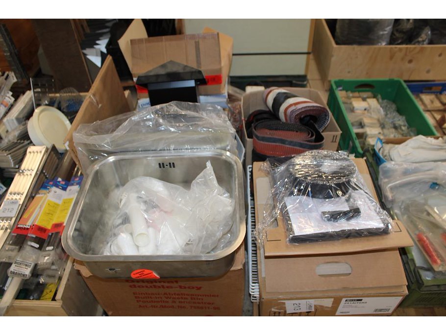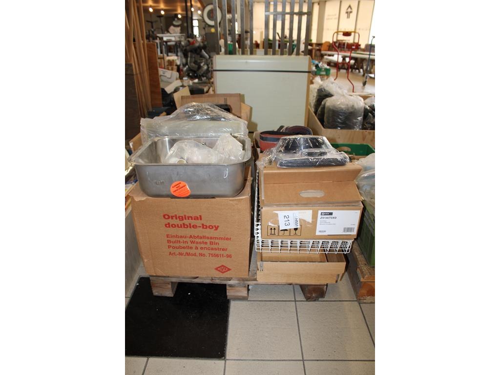 Klusproducten w.o. dakdoorvoer, inbouw afvalbak, dakloodvervanger, mandjes, metalen poten en HILTI producten op pallet.