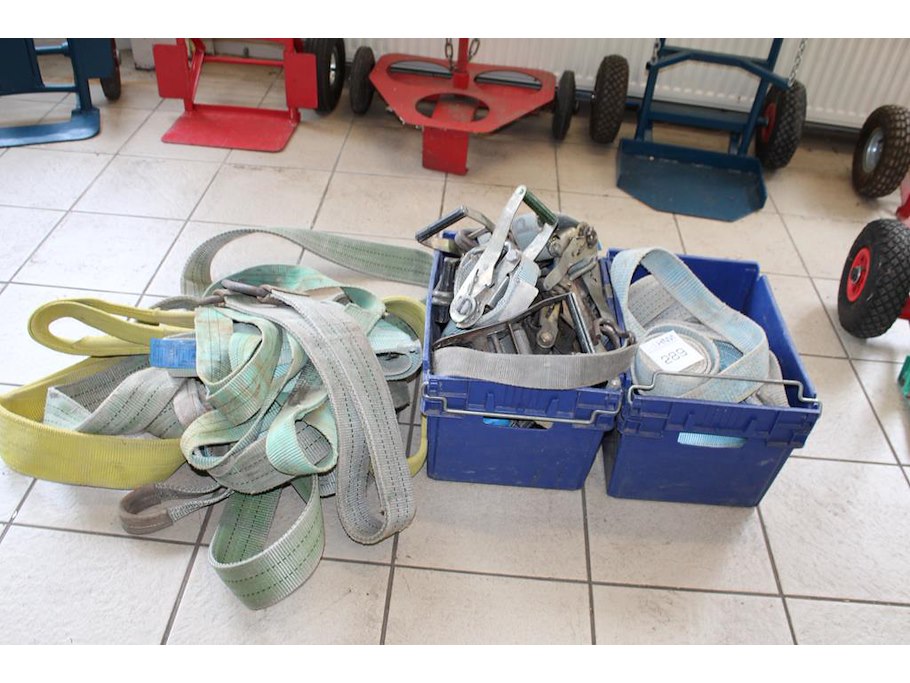 Span- en hijsbanden in en om 2 kratten.