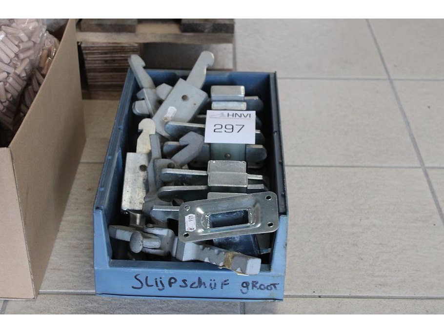 Deur vastzetters in drie uitvoeringen, 14 stuks in kunststof bak.