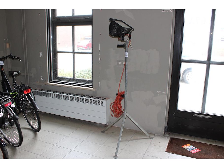 Bouwlamp op statief in hoogte verstelbaar.
