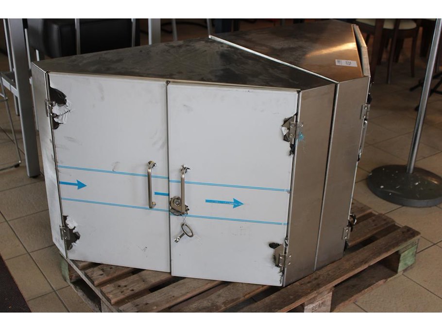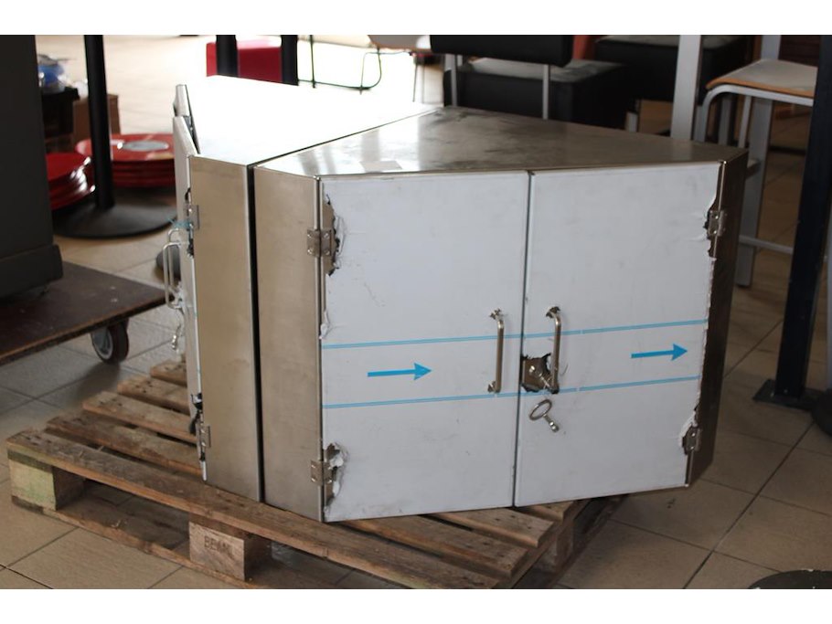 Twee rvs hoekkastjes. afmeting 70 x 70 x 70 cm.