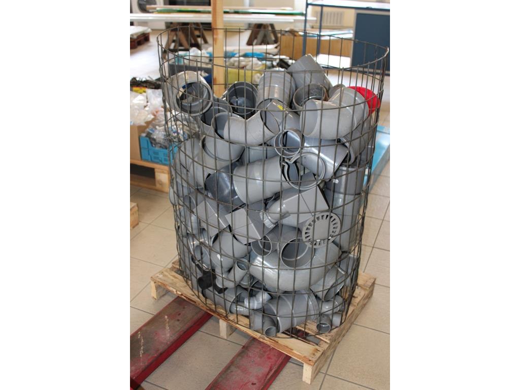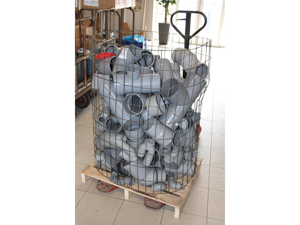 Kunststof koppelingen in diverse maten en uitvoeringen in draagmand.