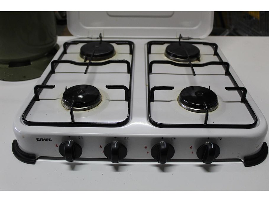 Vierpits kooktoestel met gasfles. afmeting 50 x 50 cm.