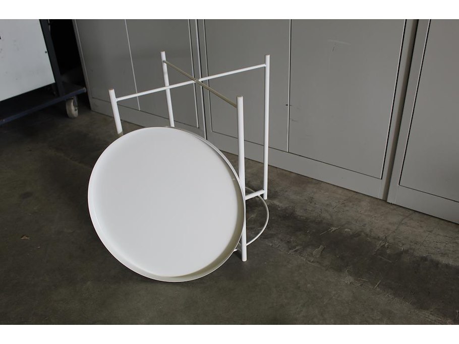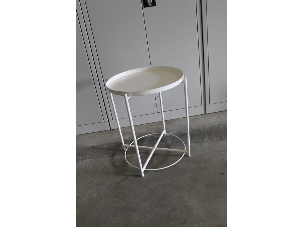 Bijzettafel rond 42x52 cm wit metaal met afneem dienblad. afmeting 47,5 cm en hoogte 53 cm