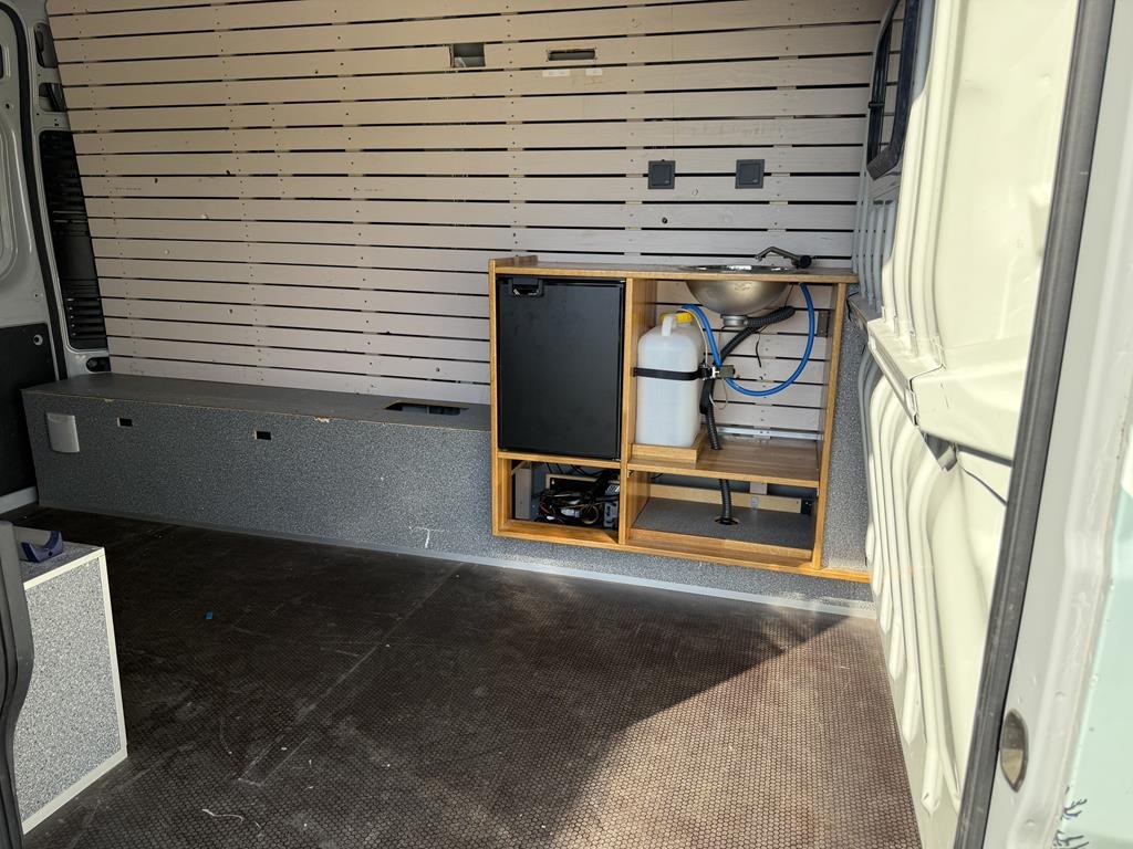 Bedrijfsbus Fiat Ducato 9v automaat met kenteken VFH-36-R Datum eerste toelating 28-2-2020. Vervaldatum APK 20-3-2026. Afgelezen kilometerstand 111.201 Vermogen 130 kW / 177 PK bij 3.500 rpm Transmissie Automaat Cilinderinhoud 2287cc Brandstof Diesel Emissieklasse 6 Lengte 554 cm Breedte 205 cm Drie zitplaatsen Laadvermogen 1310 kg Catalogusprijs 65.166 Beletteringstekst bedrijfsnaam deels verwijderd Wandmeubel met spoelbakje en koelkast (huishoudaccu en omvormer afgekoppeld, dienen geinstalleerd te worden) Gewone accu dient vervangen te worden, voertuig start met booster Luxe uitgevoerd met o.a. cruise control, boordcomputer, parkcontrol, camera, stootbar, lichtmetalen velgen etc.