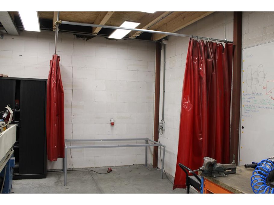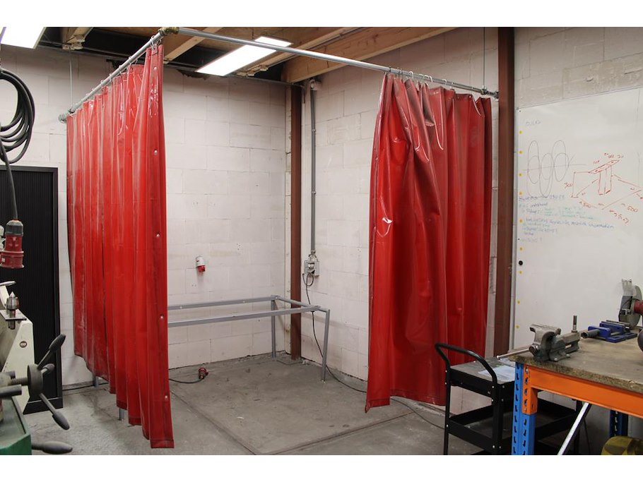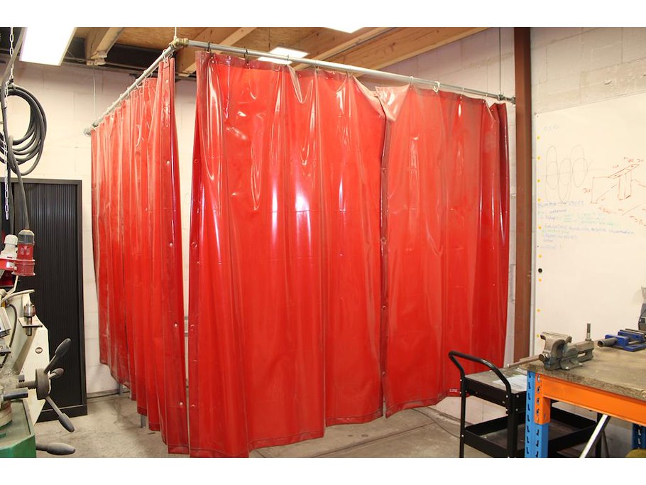 Lasgordijn CEPRO Orange met hoekrail. Hoogte 200 cm. Breedte 250 + 270 cm.