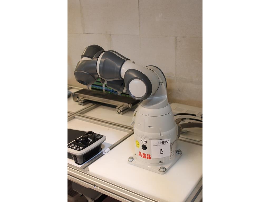 Robotarm ABB Manipulator IRB 14050-0.5/0.5. Bouwjaar 2019. In gebruik als lesrobot. Let op: exclusief verrijdbare tafel.