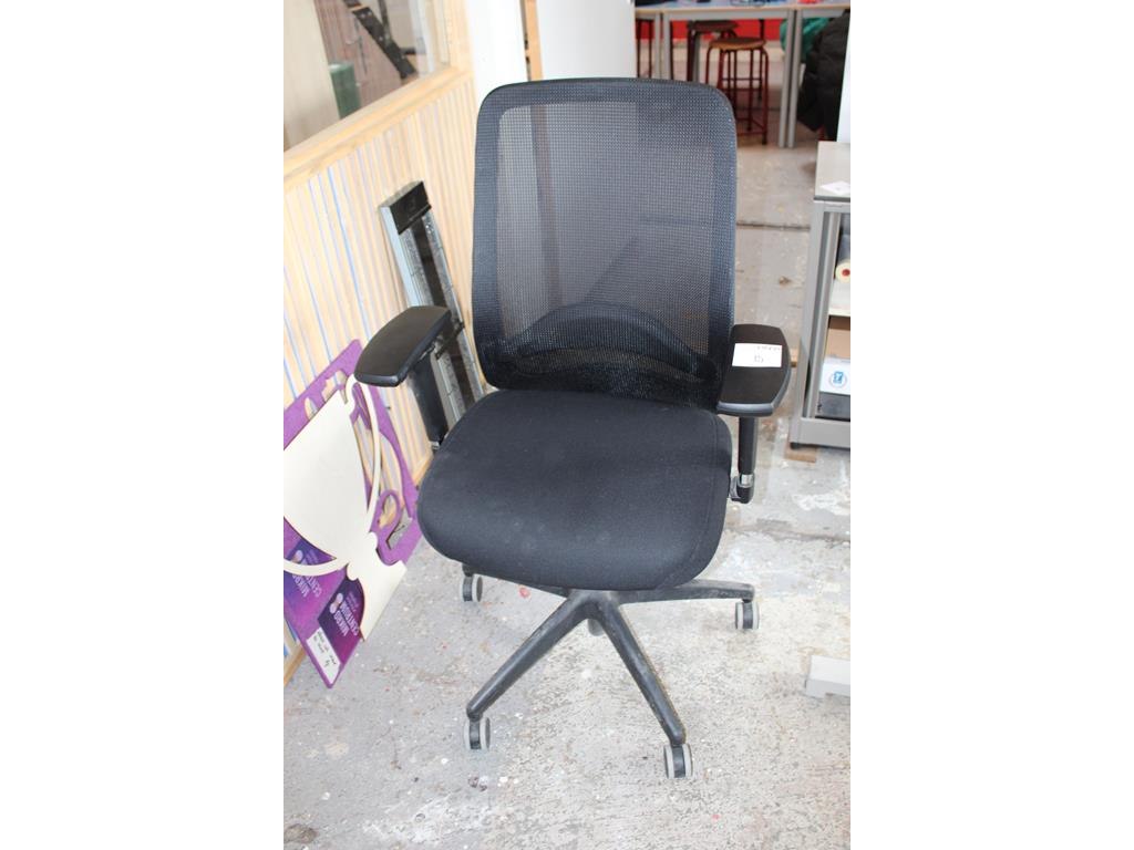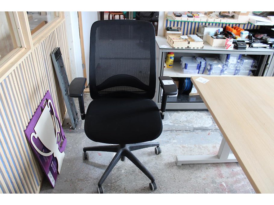 Verrijdbare bureaustoel met armleuningen.