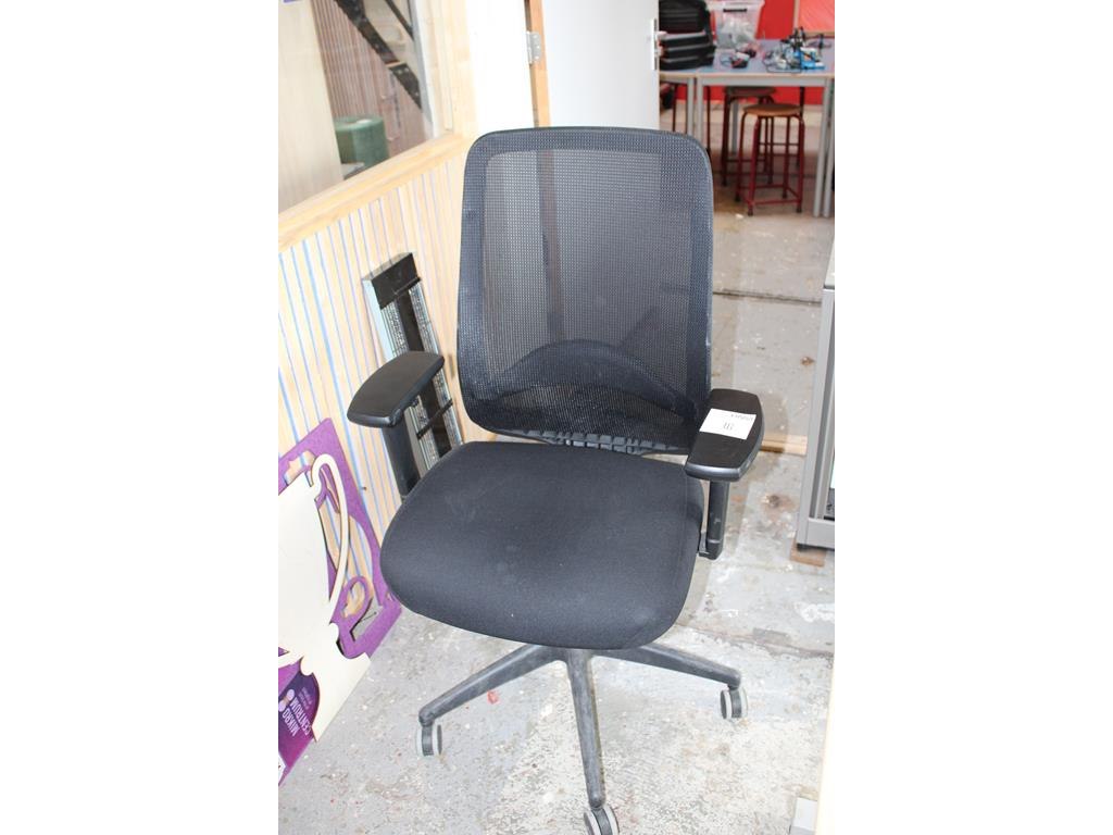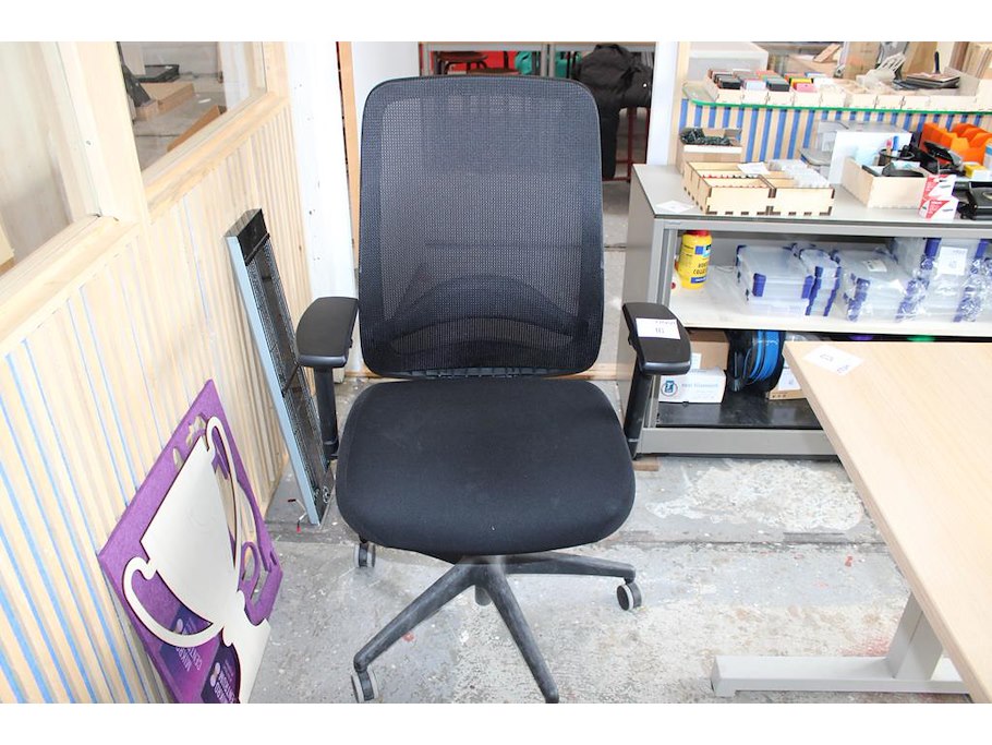 Verrijdbare bureaustoel met armleuningen.