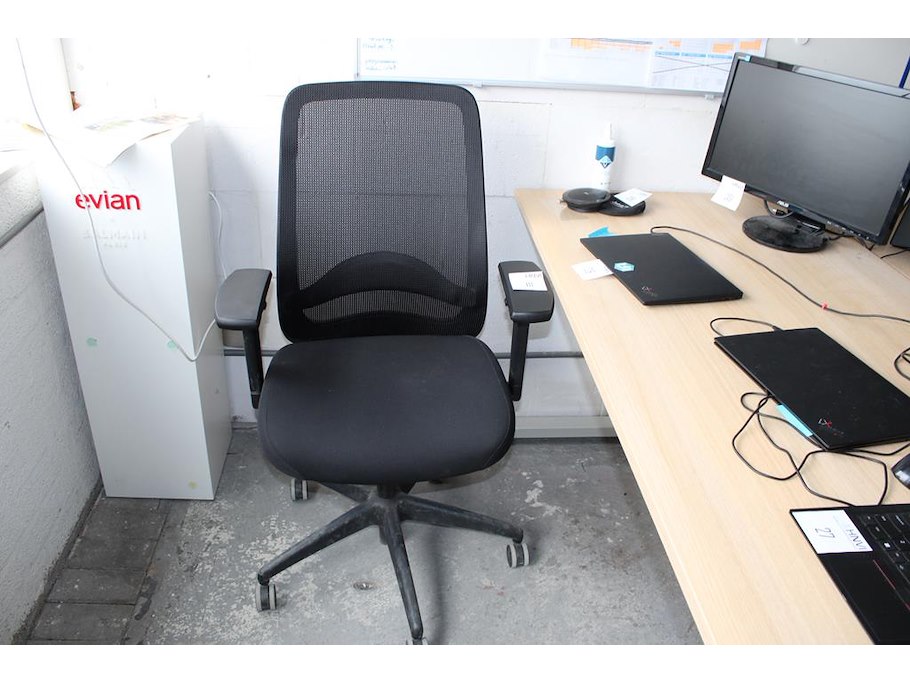 Verrijdbare bureaustoel met armleuningen.