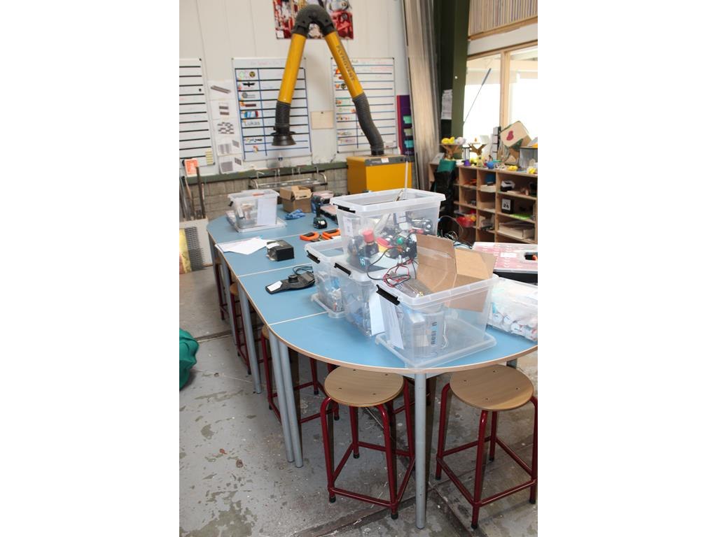 Ovale spreektafel bestaande uit 5 delen. afmeting 350 x 140 x 75 cm.