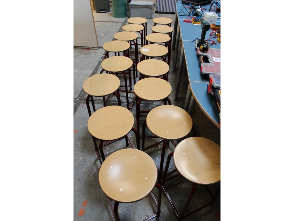 15 krukken met houten zitting en metalen onderstel. hoogte 55 cm.
