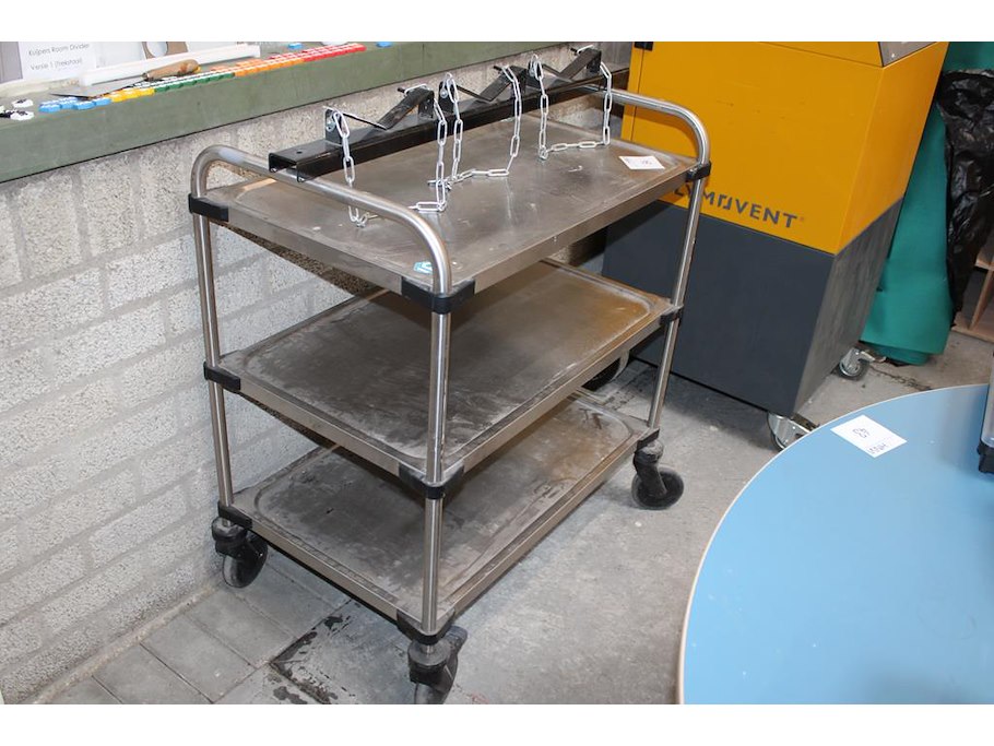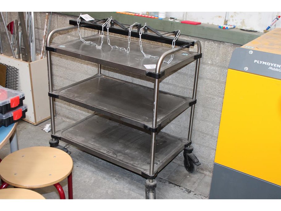 RVS serveerwagen. Afmeting 85 x 54 x 96 cm.