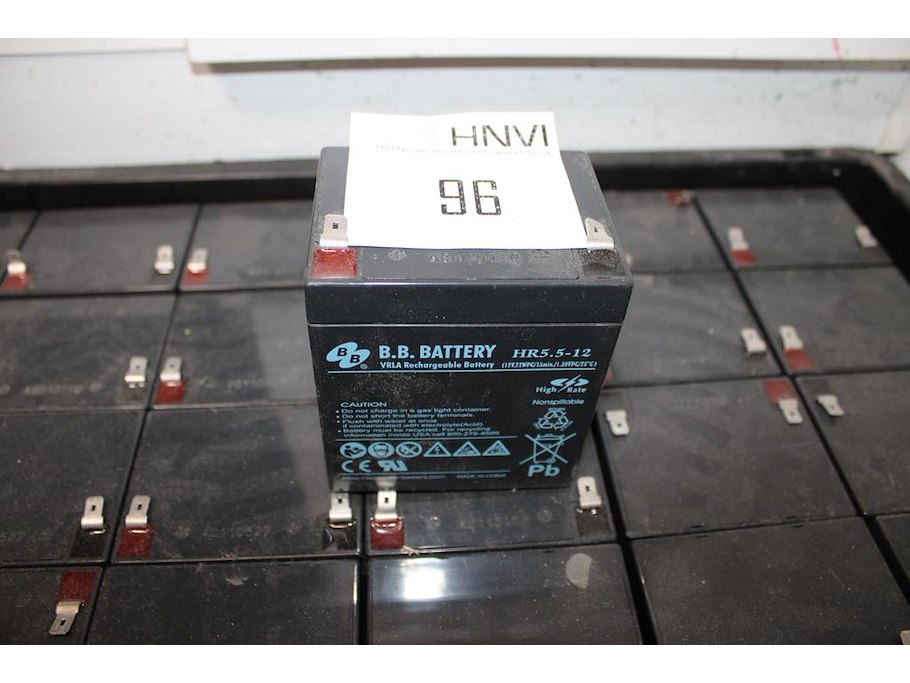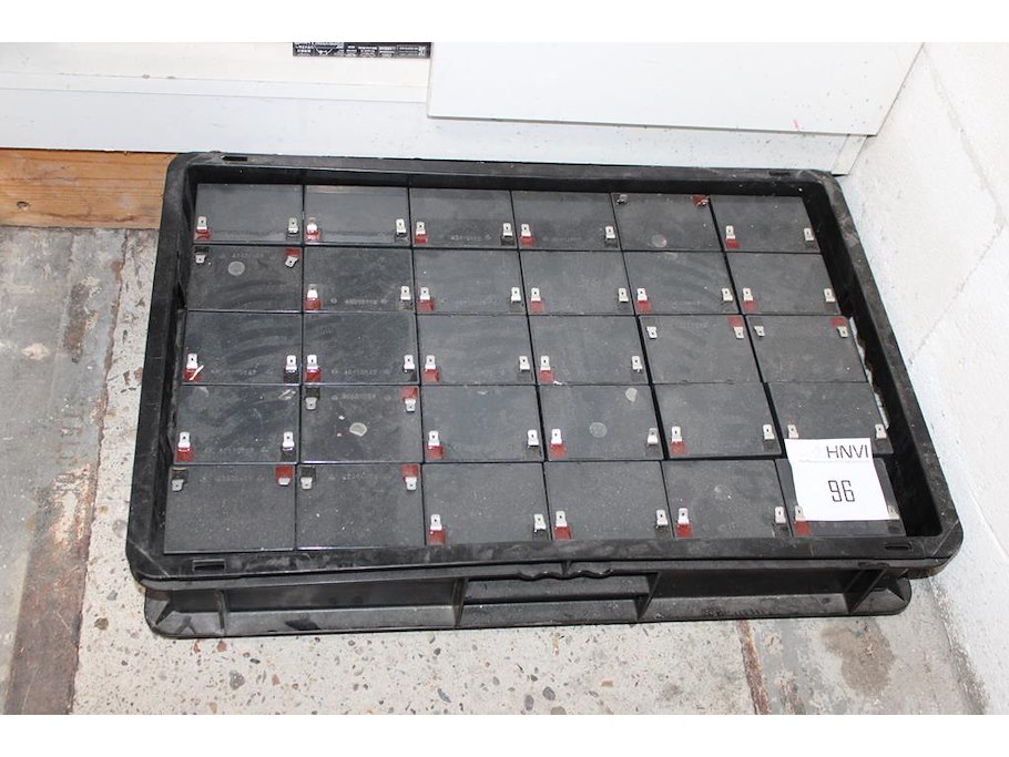 Krat met accu's BB type HR5.5-12, totaal 30 stuks.