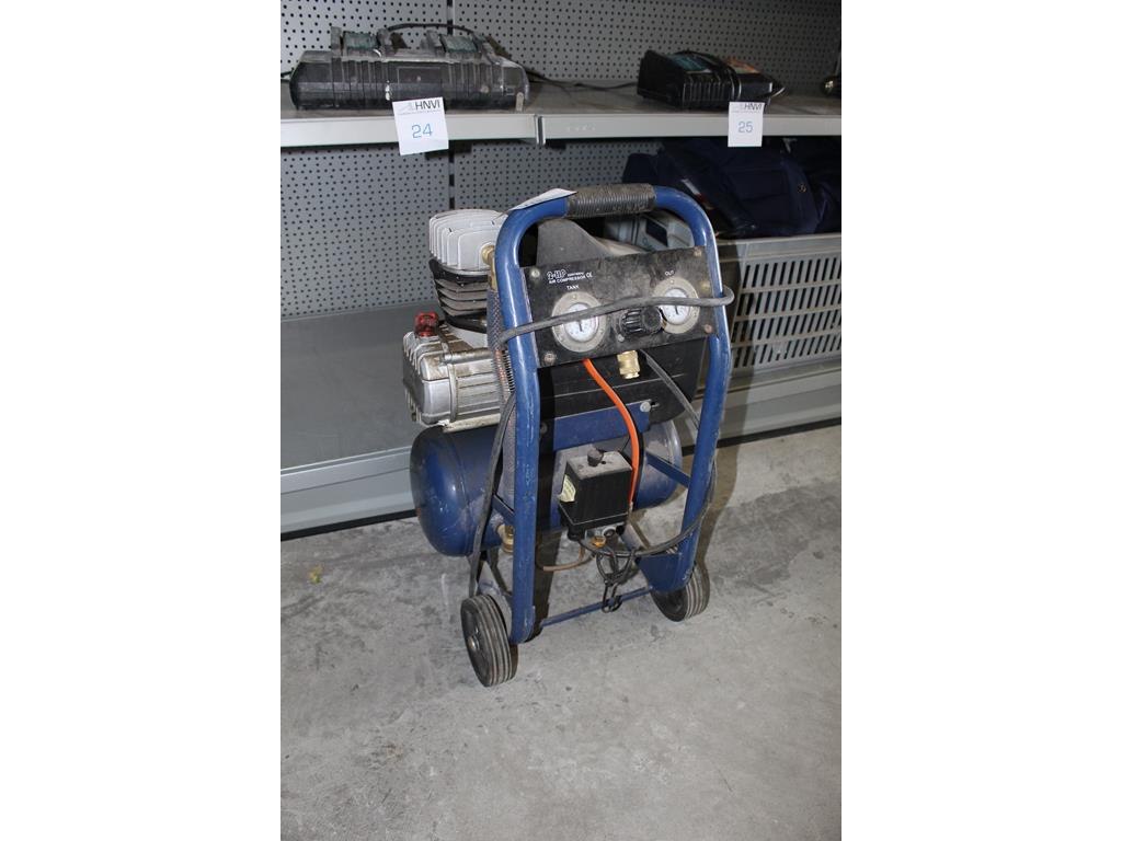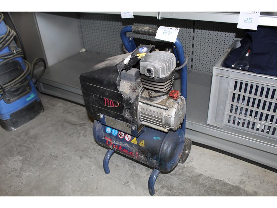 Compressor DUTACK 2HP met 10 liter tank. Kunststof beschermkap beschadigd maar wel werkend.