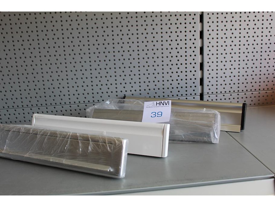 Vier diverse inbouwbrievenbussen.