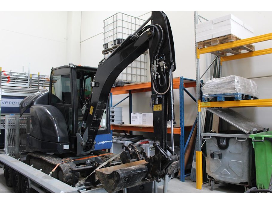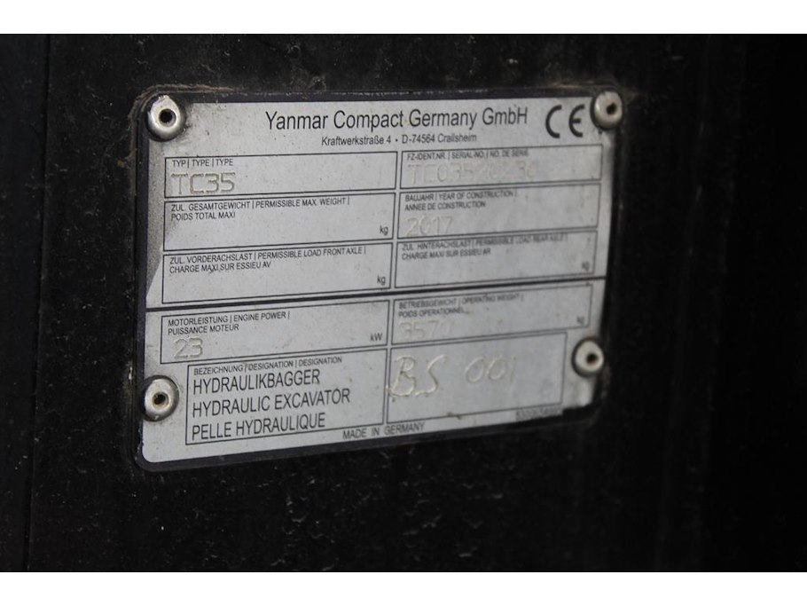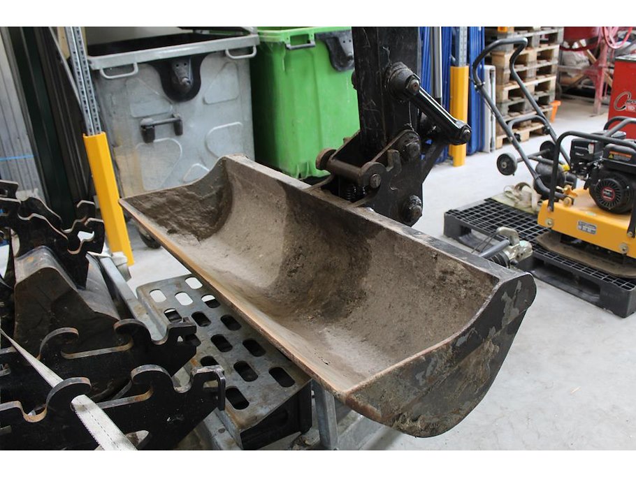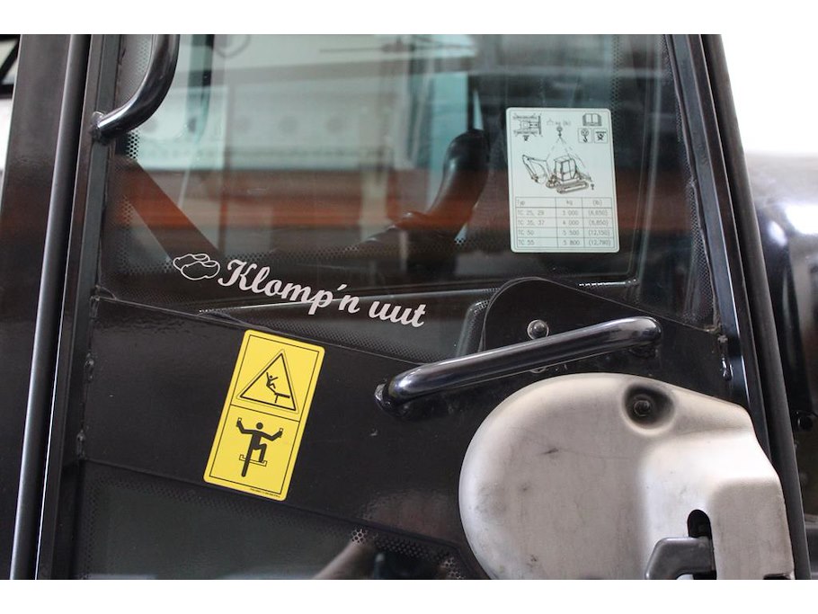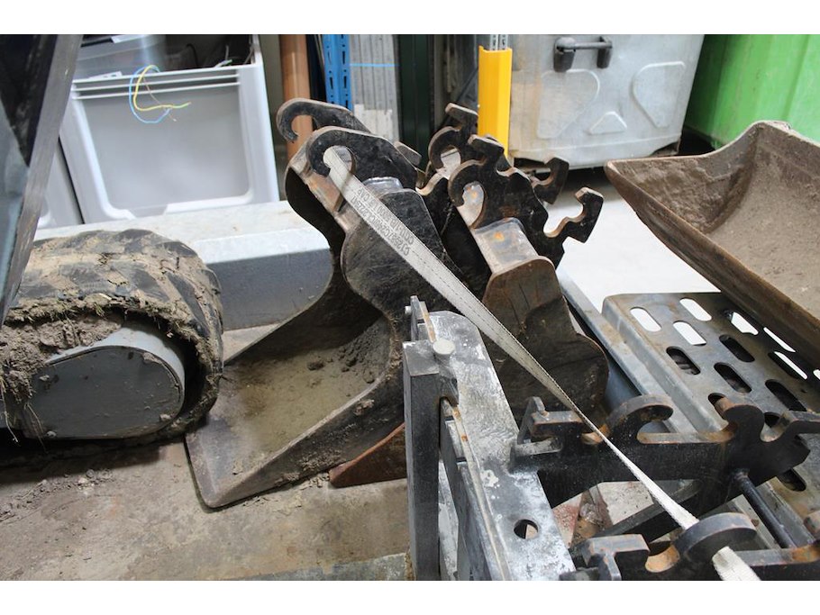Rupsgraafmachine TEREX TC35. Bouwjaar 2017. Urenstand 1003. Met drie graaf/sleuvenbakken en set voorzetlepels. Breedte graafbakken 130 cm, 60 cm en 40 cm. Lepellengte ca. 100 cm. Gewicht 3570 kg. Met ingebouwde radio, digitale aflezing, verwarming en kantelbare voorruit.