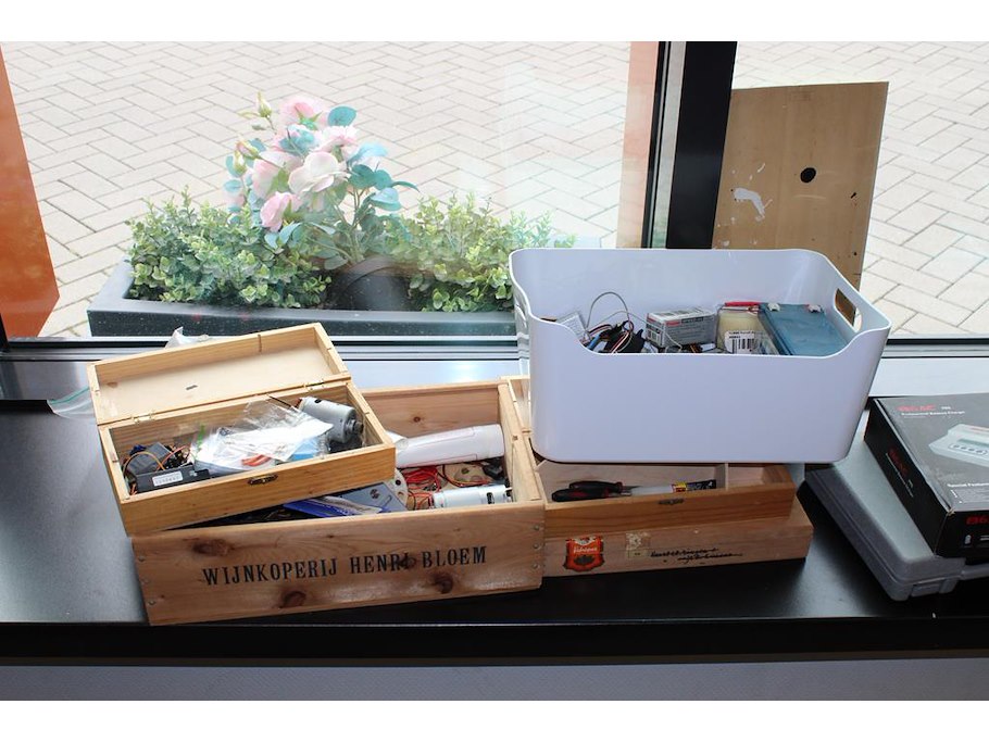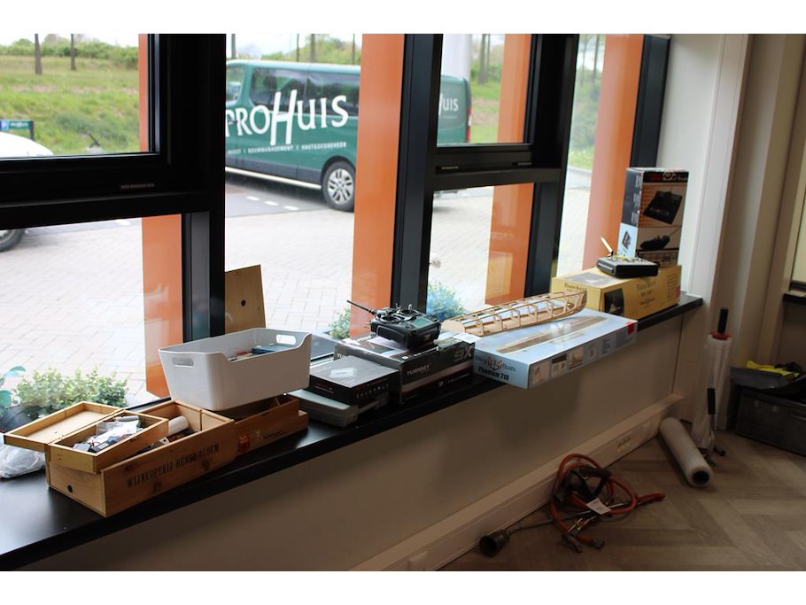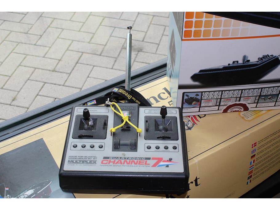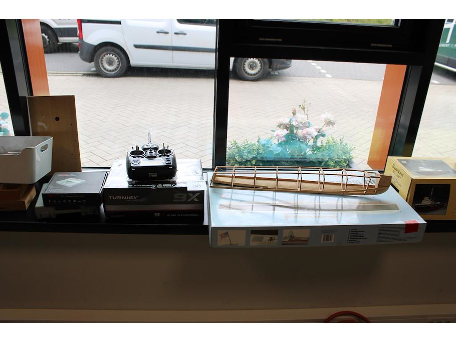 Radiografisch bestuurbare onderdelen, bouwpakketten, afstandsbedieningen etc. Compleetheid en werking onbekend. Op schap.