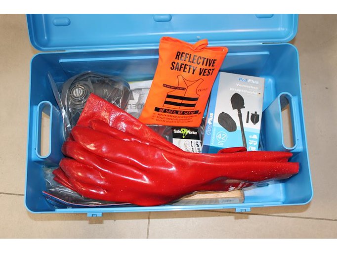 Veiligheidskist medisafe met diverse beschermingsmiddelen.