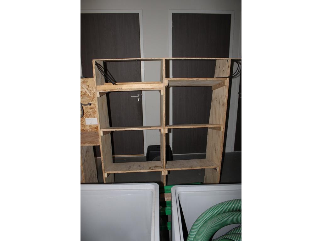 Houten bedrijfswageninrichting. afmeting . 279 x 50 x 163 cm.