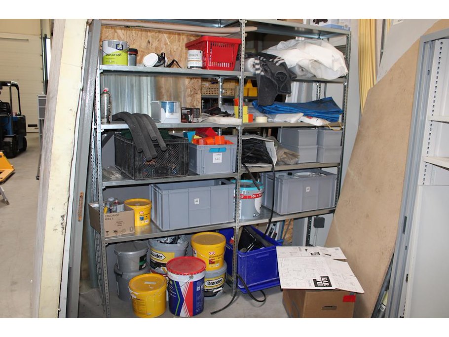Inhoud tweedelige stelling, diverse bouw gerelateerde producten, plaatwerk, deuren. In en om twee stellingen.