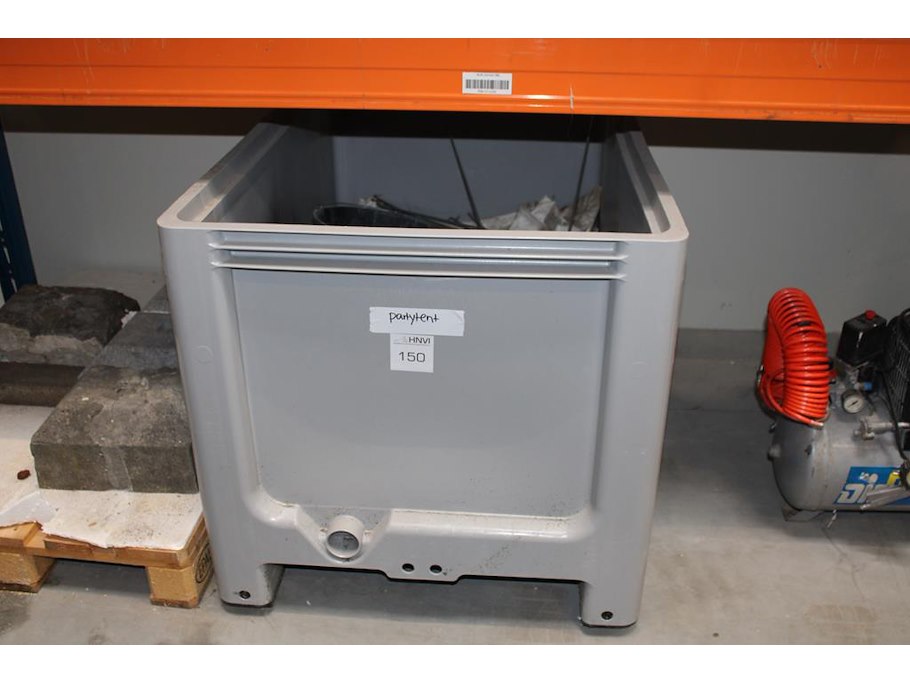 Grote partytent gedemonteerd in accu bak. Vermoedelijk 8 x 4 m, compleetheid onbekend.