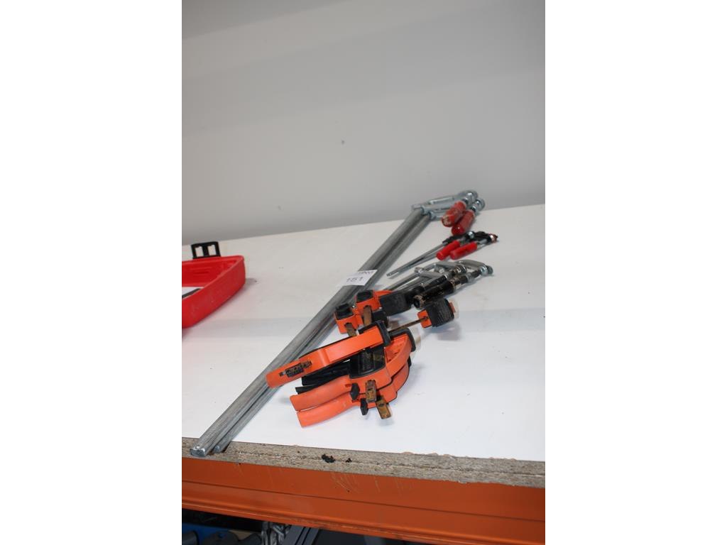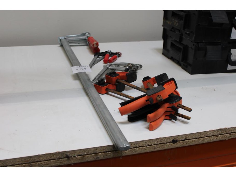 Lijmklemmen en tangen in diverse maten en uitvoeringen. negen stuks.