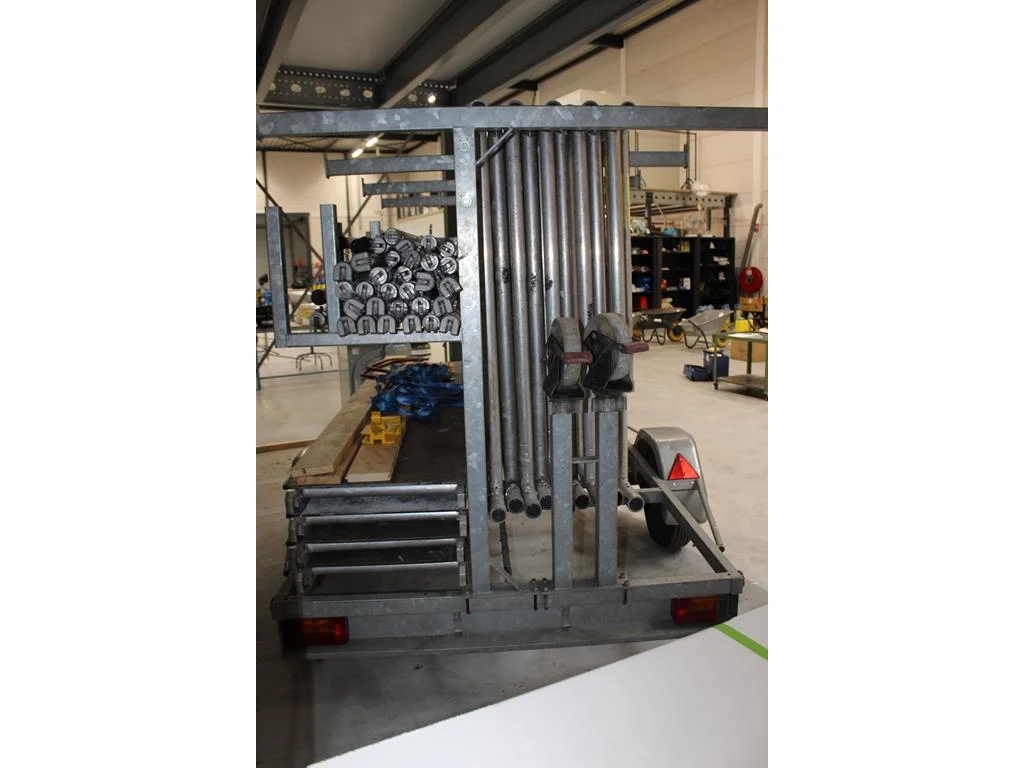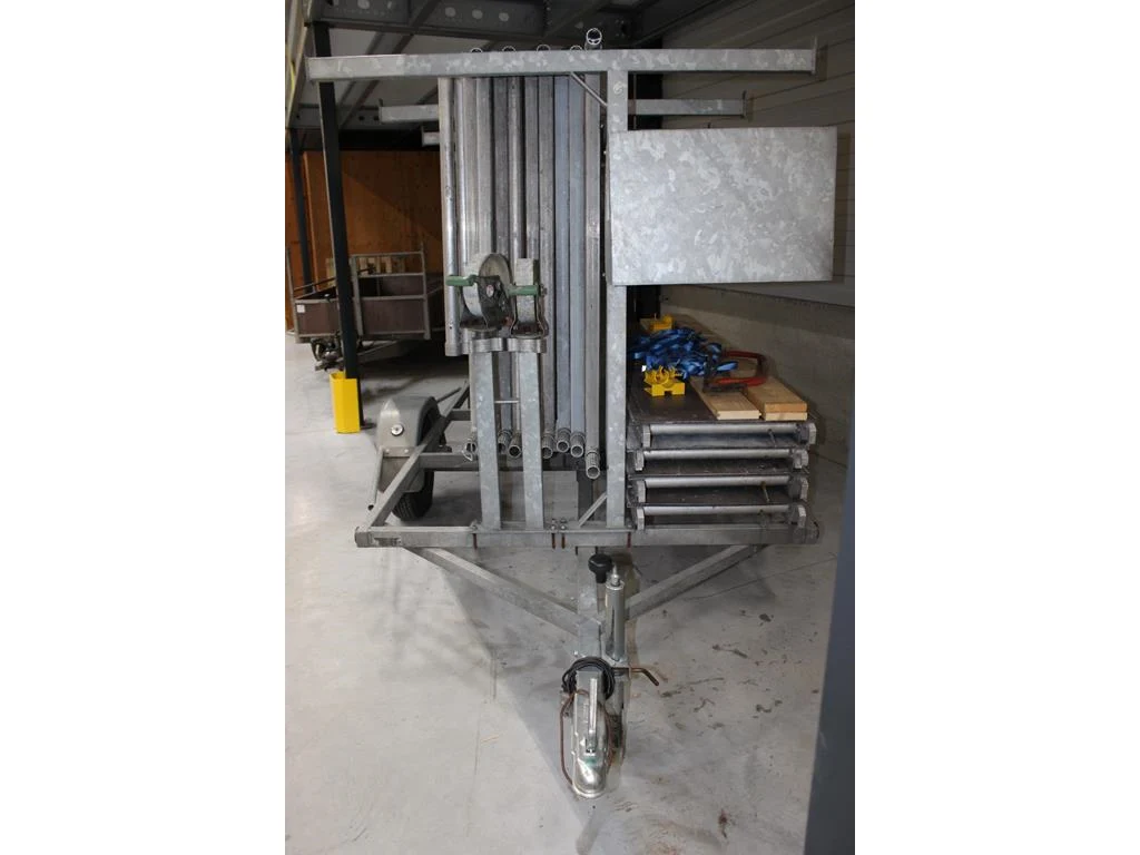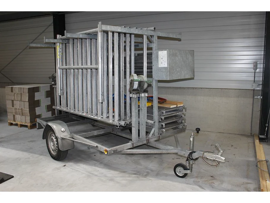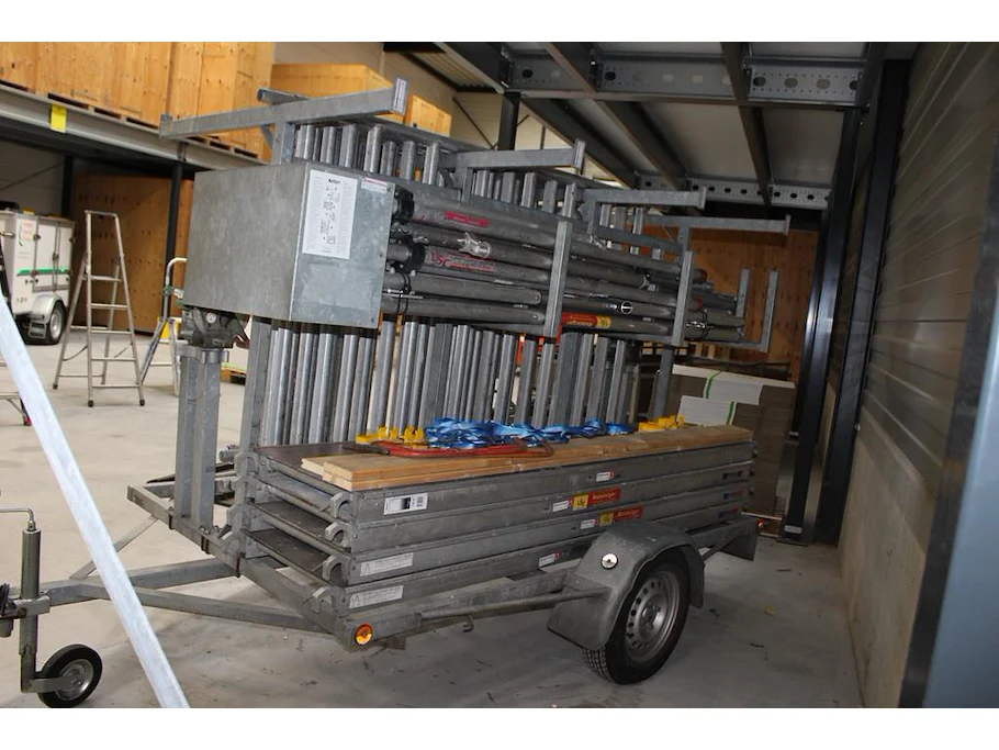 Steigeraanhanger met rolsteiger lsc bestaande uit 9 zijdelen, vier wielen, 4 loopplanken, 2 zijsteunen, le...