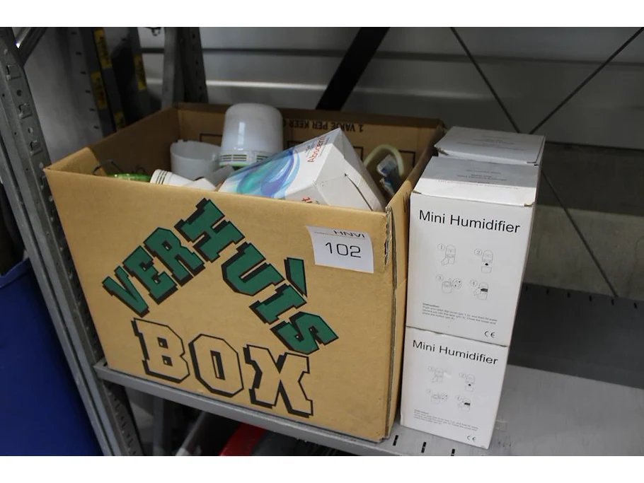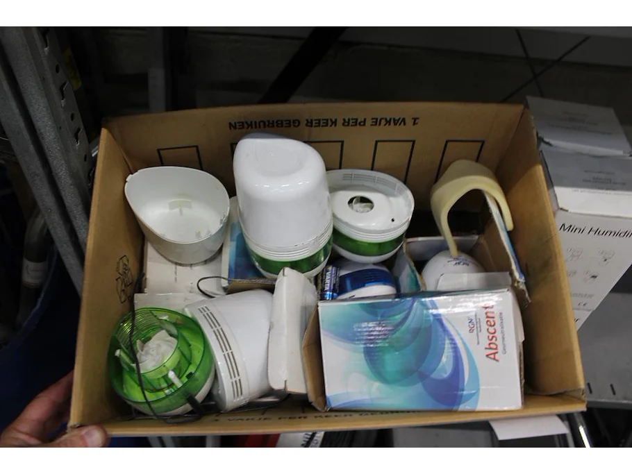 Luchtbevochtiger w.o. RGN in en om verhuisdoos.