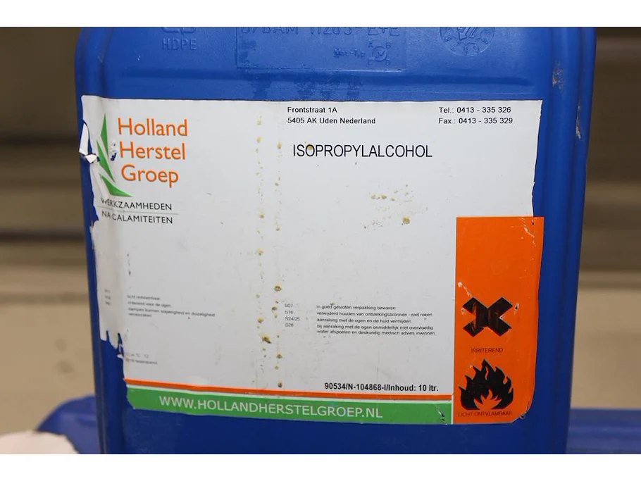 Negen deels aangebroken cans ISOPROPYLALCOHOL.