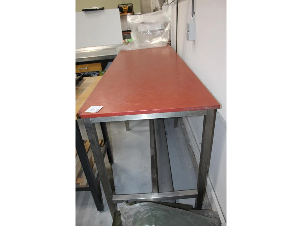 Werktafel met kunststof blad en rvs onderstel wijdeven & zn. afmeting 250 x 70 x 90 cm. let op: klein hoekj...
