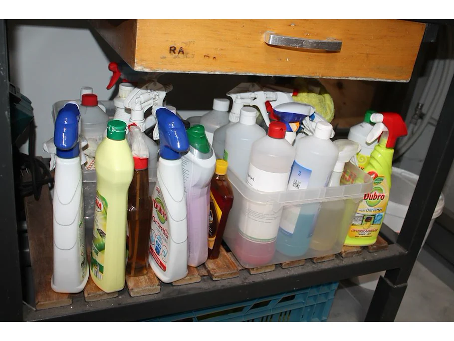 Schoonmaakmiddelen in meubel w.o. poetsdoeken, verfrissers en reinigers. Let op: exclusief meubel.