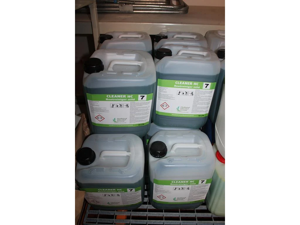 Ruim 30 cans reinigingsmiddelen w.o. roetreiniger mild en strong, sanosept 80 H en Porex 2000.