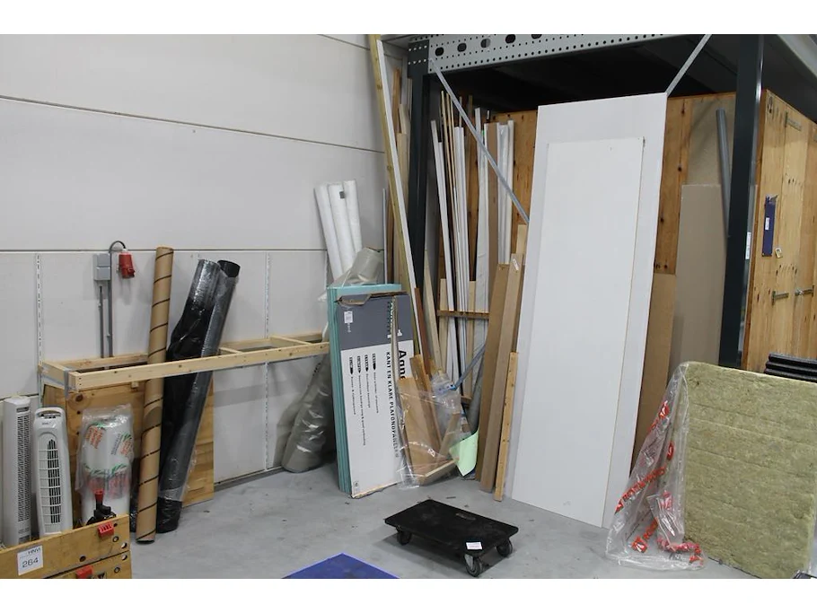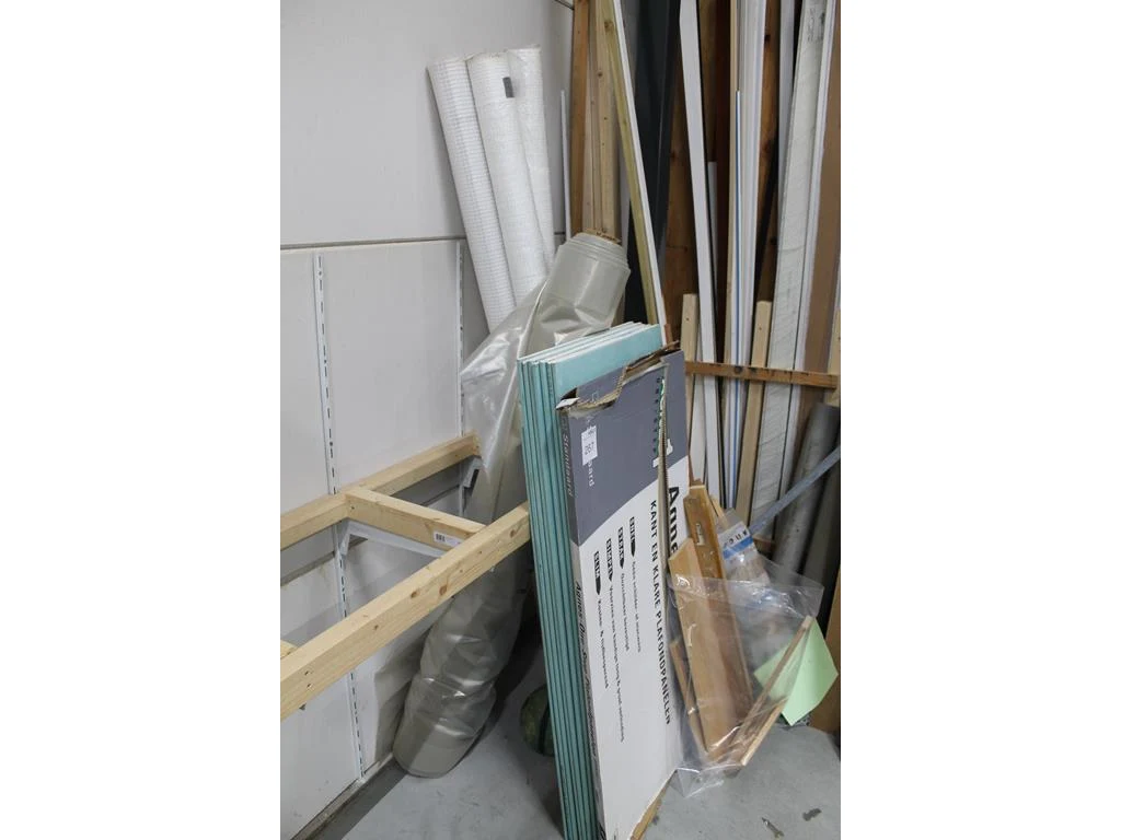 Bouwgerelateerde materialen w.o. gips, plinten, balkhout, miofol en bouwfolie.