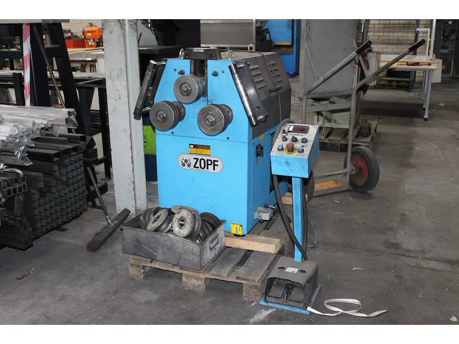 Pijpenbuigmachine ZOPH ZB70/2H1 met diverse koppen in bak. Bouwjaar 2005.