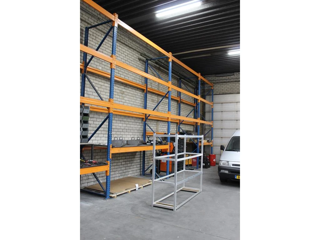 Palletstelling bestaande uit 5 staanders met afmeting ca. 110 x 450 cm en 32 liggers met lengte 300 cm.