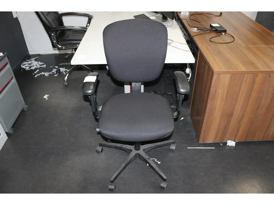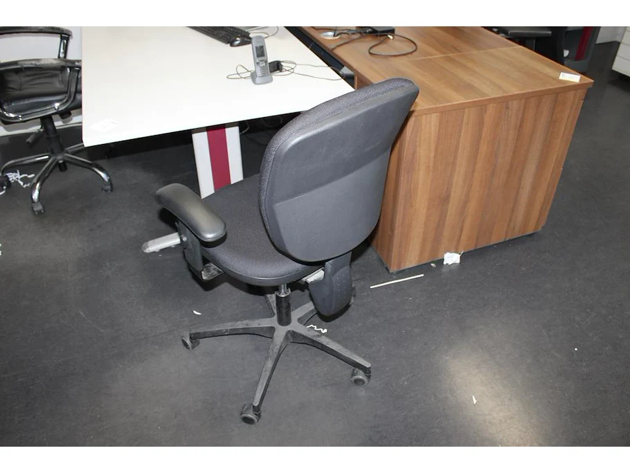 Verrijdbare zwarte bureaustoel.