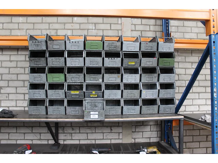 40 metalen stapelbare bakken met afmeting 21,5 x 34 x 20 cm.